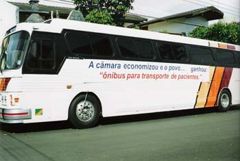 O ônibus adquirido pela Prefeitura de Jales, com recursos da Câmara Municipal, para transporte de pacientes ao Hospital do Câncer na cidade de Barretos, foi apresentado à população pelo presidente do Legislativo, Gilberto Alexandre de Moraes e vereadores, na última segunda-feira.