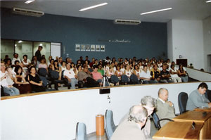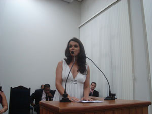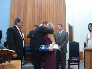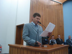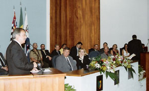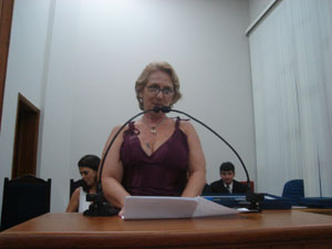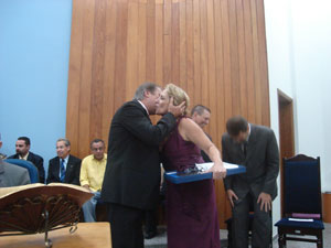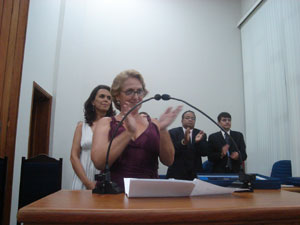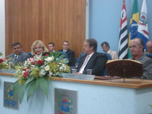 A presidenta da Câmara Municipal, Aracy de O. Murari Cardozo (Tatinha), ao abrir a sessão falou aos presentes da importância da Medalha XV de Abril.