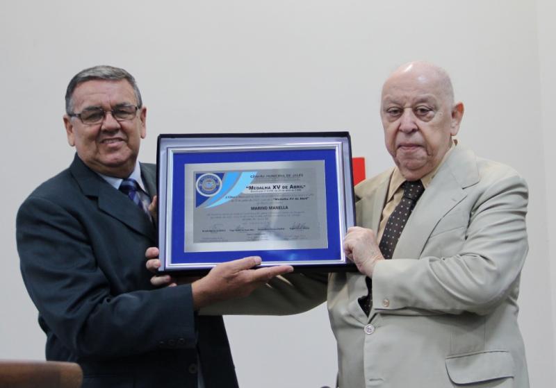 Com o Plenário "Presidente Tancredo Neves" lotado, a Câmara Municipal de Jales "Vereador Mário José Miranda" realizou, nesta terça-feira, 12 de abril, Sessão Solene para a entrega de "Medalhas XV de Abril" e "Títulos de Cidadão Jalesense", honrarias destinadas a quem se distingue principalmente por notável sucesso profissional, altruísmo ou relevantes serviços prestados ao município.