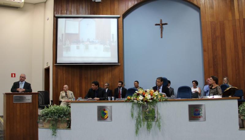 A Mesa de Honra da solenidade foi composta pelo Presidente da Câmara de Jales, vereador Nivaldo Batista de Oliveira – o Tiquinho, acompanhado pelos Edis Tiago Vandré de Souza Abra, vice-presidente e Pérola Maria Fonseca Cardoso, 1ª Secretária, além do Prefeito Municipal Pedro Manoel Callado Moraes e do Dr. Jayme de Oliveira, Presidente da Associação Paulista de Magistrados – APAMAGIS, representando o Poder Judiciário.