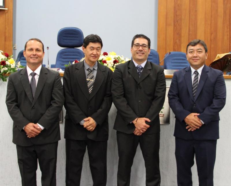 Os vereadores empossados são Vagner Selis (PRB), Vanderley Vieira dos Santos (PPS), Fabio Kazuto Matsumura (PSB), Nivaldo Batista de Oliveira (PSD), Bismark Jun Iti Kuwakino (PSDB), Claudecir Jose dos Santos (DEM), Adalberto Francisco de Oliveira Filho (PMDB), João Valeriano Zanetoni (PSB), Luiz Henrique Viotto (PP) e Tiago Vandre de Souza Abra (PP).