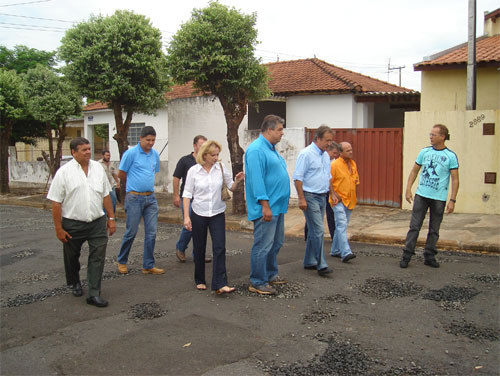 A presidenta Aracy de Oliveira Murari Cardozo e os vereadores Gilberto Alexandre de Morais, Jorge Pêgolo, Luis Especiato, Osmar Rezende e Rivelino Rodrigues estiveram juntamente com o prefeito Humberto Parini e o secretário municipal de Obras, Antônio Marcos Miranda, na manhã de segunda-feira, dia 26, visitando as obras de recuperação de pavimentação asfáltica no Jardim Oiti.