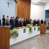 A Mesa de Honra da solenidade foi composta pelo Presidente da Câmara de Jales, vereador Nivaldo Batista de Oliveira – o Tiquinho, acompanhado pelos Edis Tiago Vandré de Souza Abra, vice-presidente e Pérola Maria Fonseca Cardoso, 1ª Secretária, além do Prefeito Municipal Pedro Manoel Callado Moraes e do Dr. Jayme de Oliveira, Presidente da Associação Paulista de Magistrados – APAMAGIS, representando o Poder Judiciário.